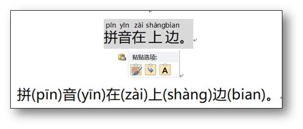 2. Seleziona il testo e il Pinyin, quindi fai clic con il tasto destro del mouse e seleziona "Incolla opzioni".